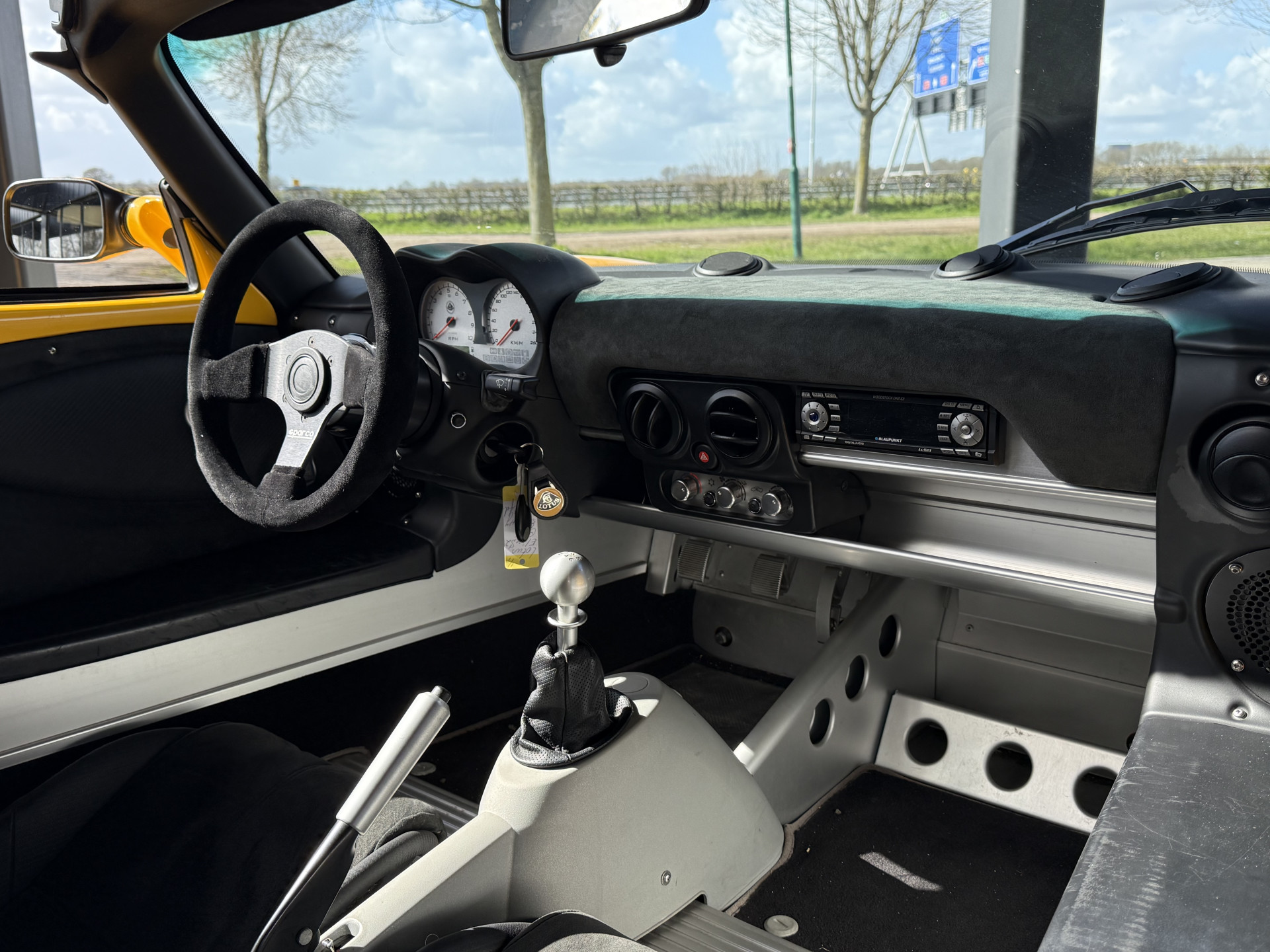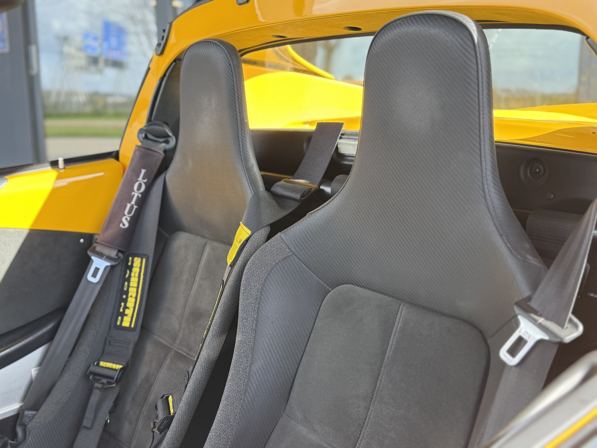 Verder is deze mooie Lotus voorzien van zwarte lichtmetalen velgen met nieuwe banden, 4 punts gordels, met airconditioning,