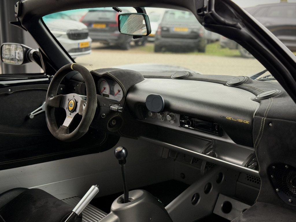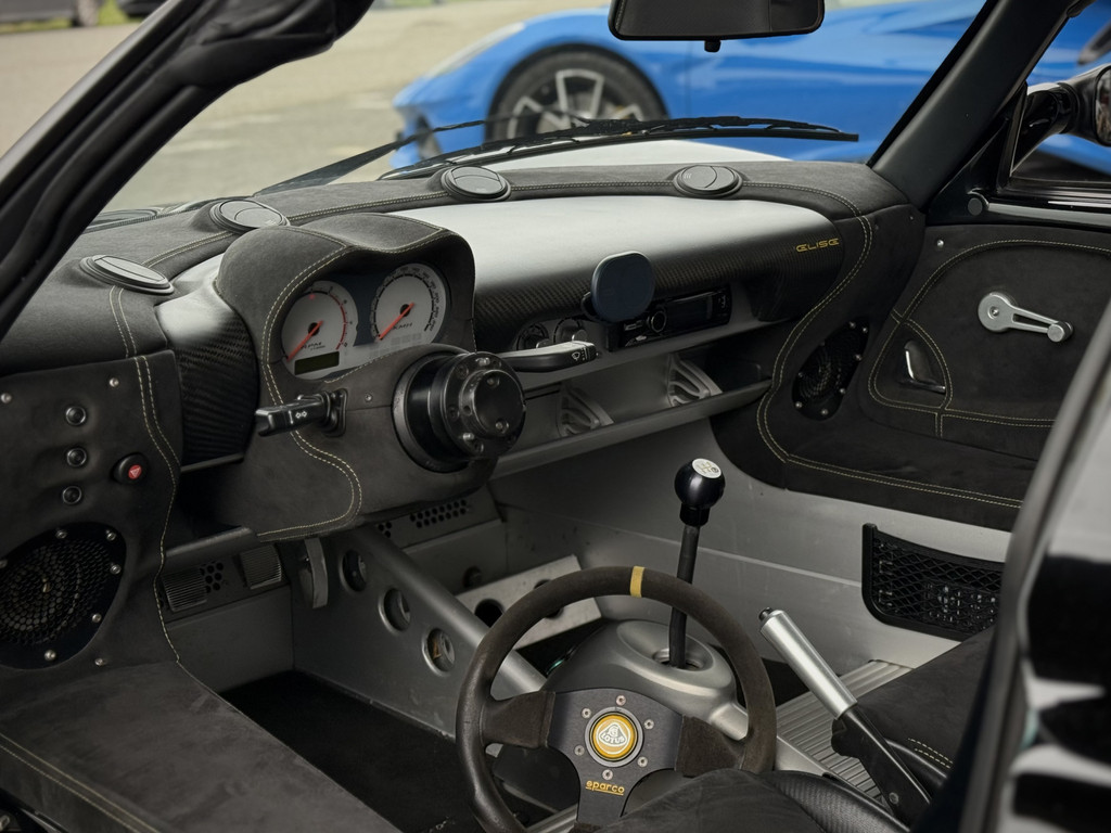 Het interieur is bewust eenvoudig gehouden en volledig gericht op de bestuurder. Luxe speelt een ondergeschikte rol; alles draait om controle, balans en beleving. Daarmee is de Lotus Elise geen doorsnee sportwagen, maar een echte rijdersauto die tot op de dag van vandaag geliefd is bij puristen en liefhebbers van puur autorijden.